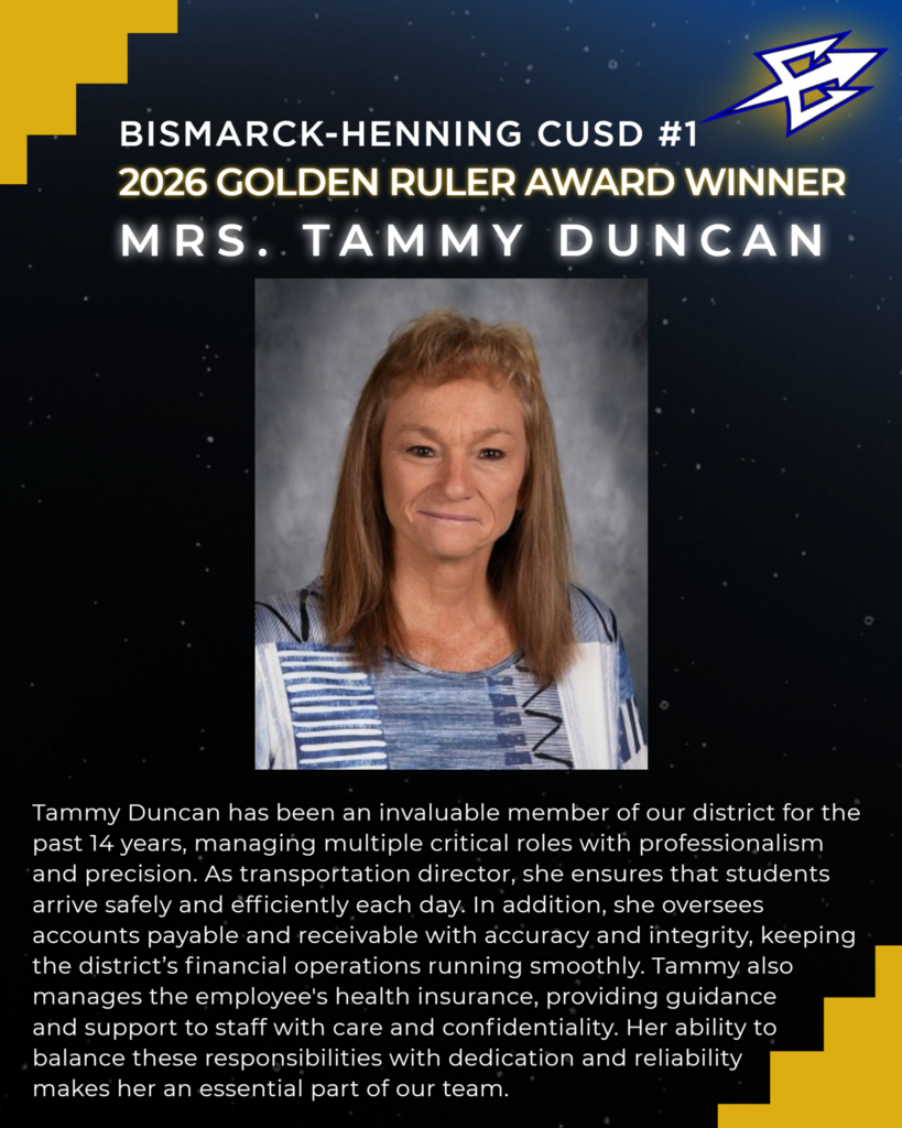 Congratulations to Mrs. Tammy Duncan! The BHCUSD Golden Ruler Award Winner